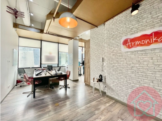 Oficina moderna con baño privado y parqueadero. Edificio con diseño bioclimático, 4 sótanos, 4 ascensores inteligentes, lobby de doble altura, salón de conferencias, 2 salas de reuniones, cafetería y terraza. Control de acceso y servicio de parqueadero pago para visitantes.